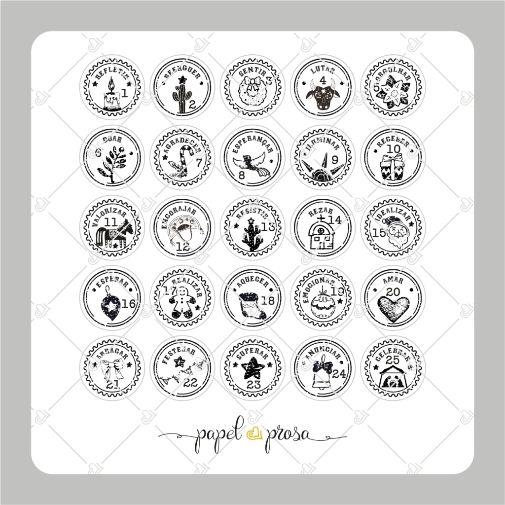 Kit é composto por 25 imagens no tamanho de 3,8 X 3,8 cm cortados no formato redondo hóstia.